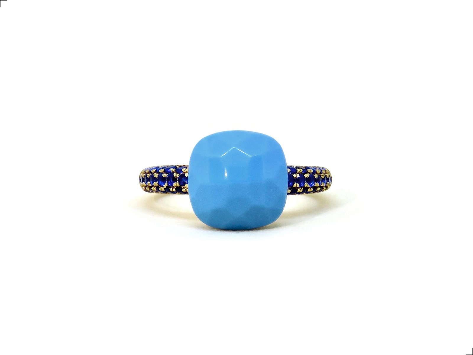 Anillo Turquesa Plata 1ra Ley 925/18k Gold Plating Button