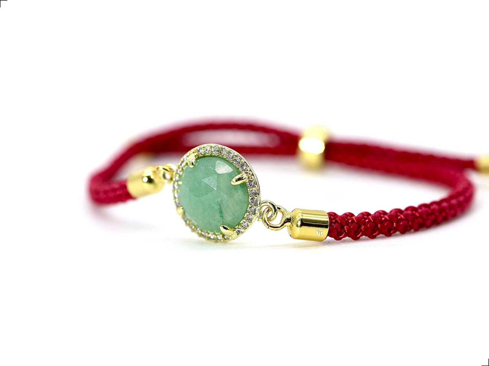 Pulsera Jade Natural Cordón Rojo Kumihimo By Thiago Turcott®