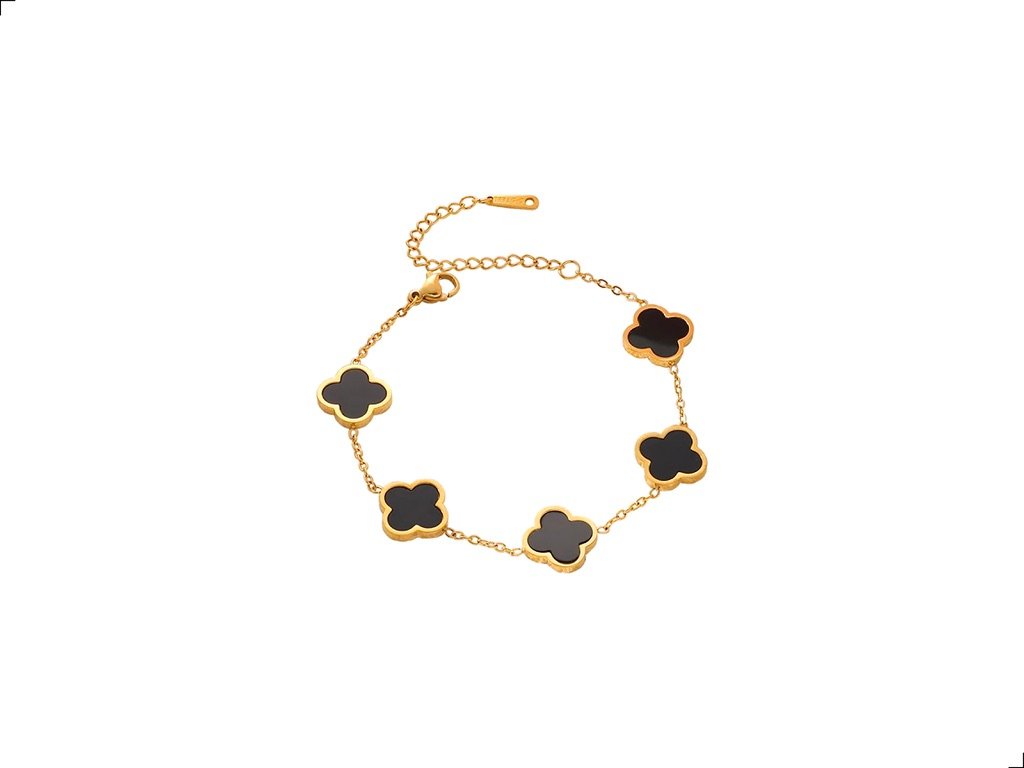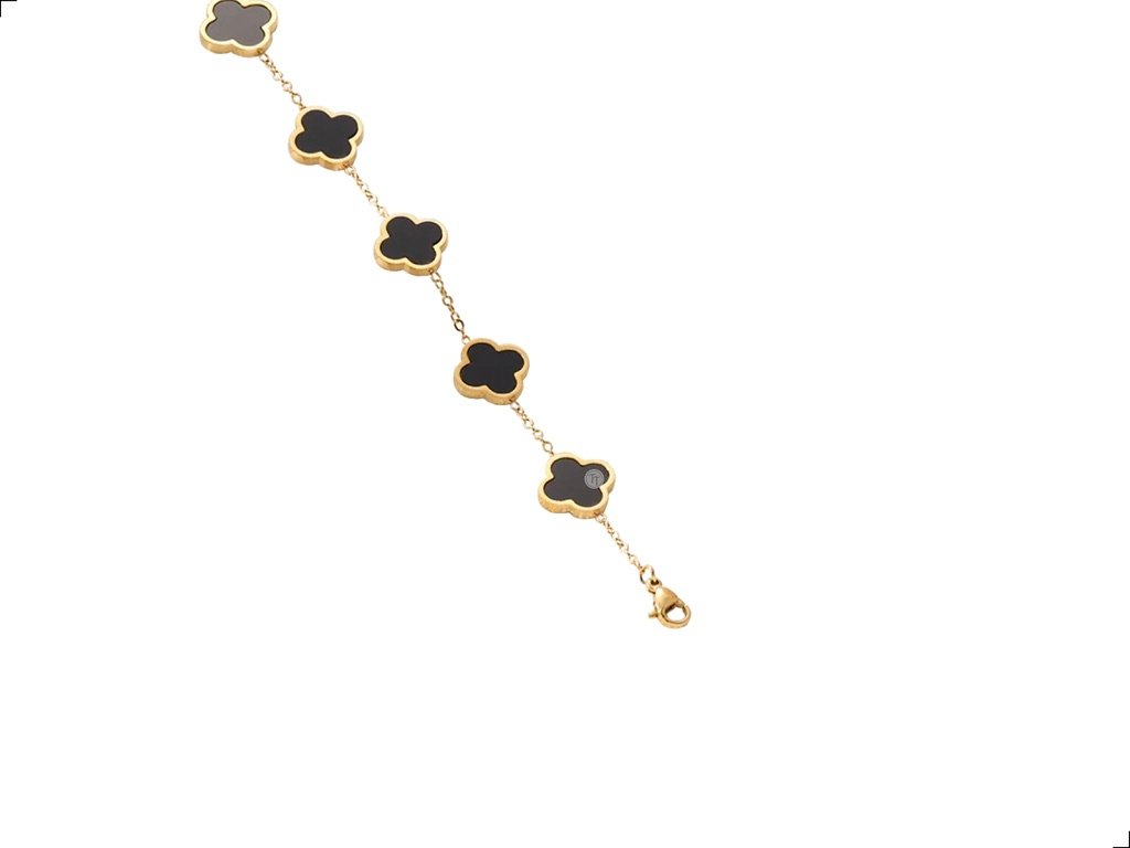 Pulsera Trébol Ágata Negra Titanio Dorado 18k