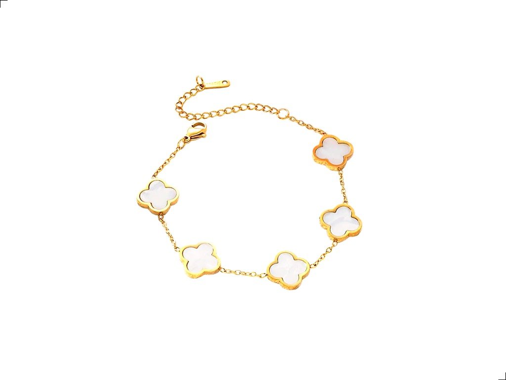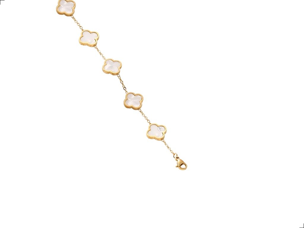 Pulsera Trébol Madre Perla Titanio Dorado 18k